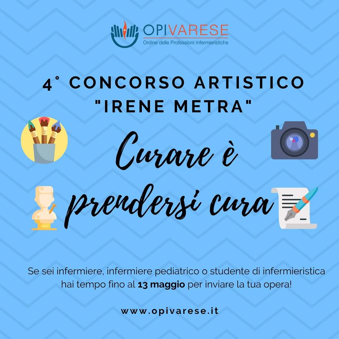 L’Ordine delle Professione Infermieristiche di Varese, in occasione della Giornata Internazionale dell’Infermiere, indice una serie di iniziative nel mese di maggio, tra cui il Concorso Artistico Irene Metra intitolato “Curare è prendersi cura”.